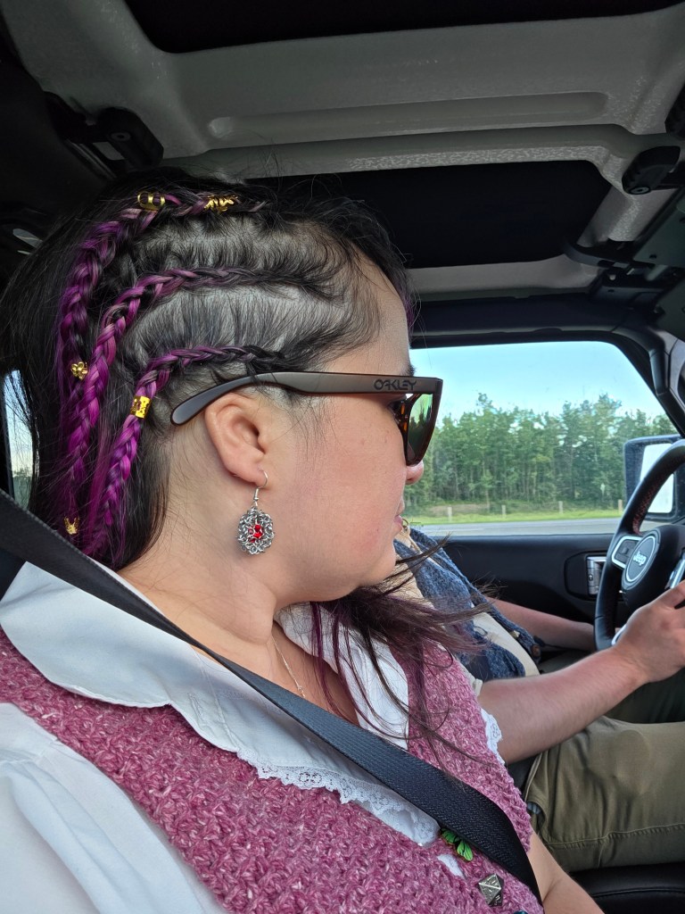 This was only the second-ever Medieval Faire hosted in Vegreville, and it was a total blast. We watched a jousting tournament, knight fights, bought some wonderfully kitschy souvenirs at the artisan market — some potion bottles, a gorgeous 100% handmade journal, and some earrings. I spun on a drop spindle in the Viking Village, and got my hair braided at a “Viking Braid Bar.” While I was waiting in line for braiding, a young lady gave me her flower crown after I complimented her on it. I nearly wept. It was a wonderful Saturday afternoon!